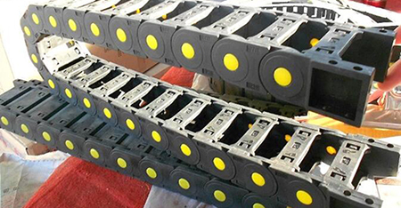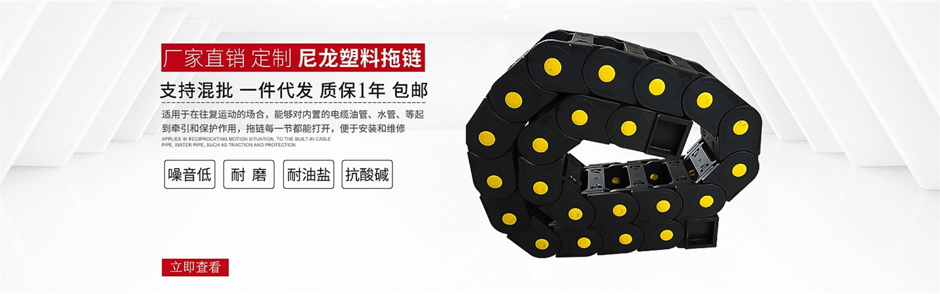 拖鏈外形似坦克鏈,由很多的單元連接構成,連接之間滾動自如。一樣系列的拖鏈的內高、外高、節距一樣,拖鏈